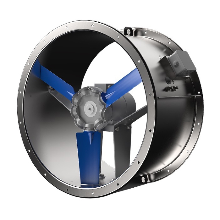 осевой вентилятор, максимальный расход воздуха 61 260 куб. м/ч, частота вращения 1 500 1/мин, максимальный располагаемый напор 450 Па, присоединительный размер 900 мм, материал корпуса: сталь, монтаж: в воздуховод, степень защиты: IPX4